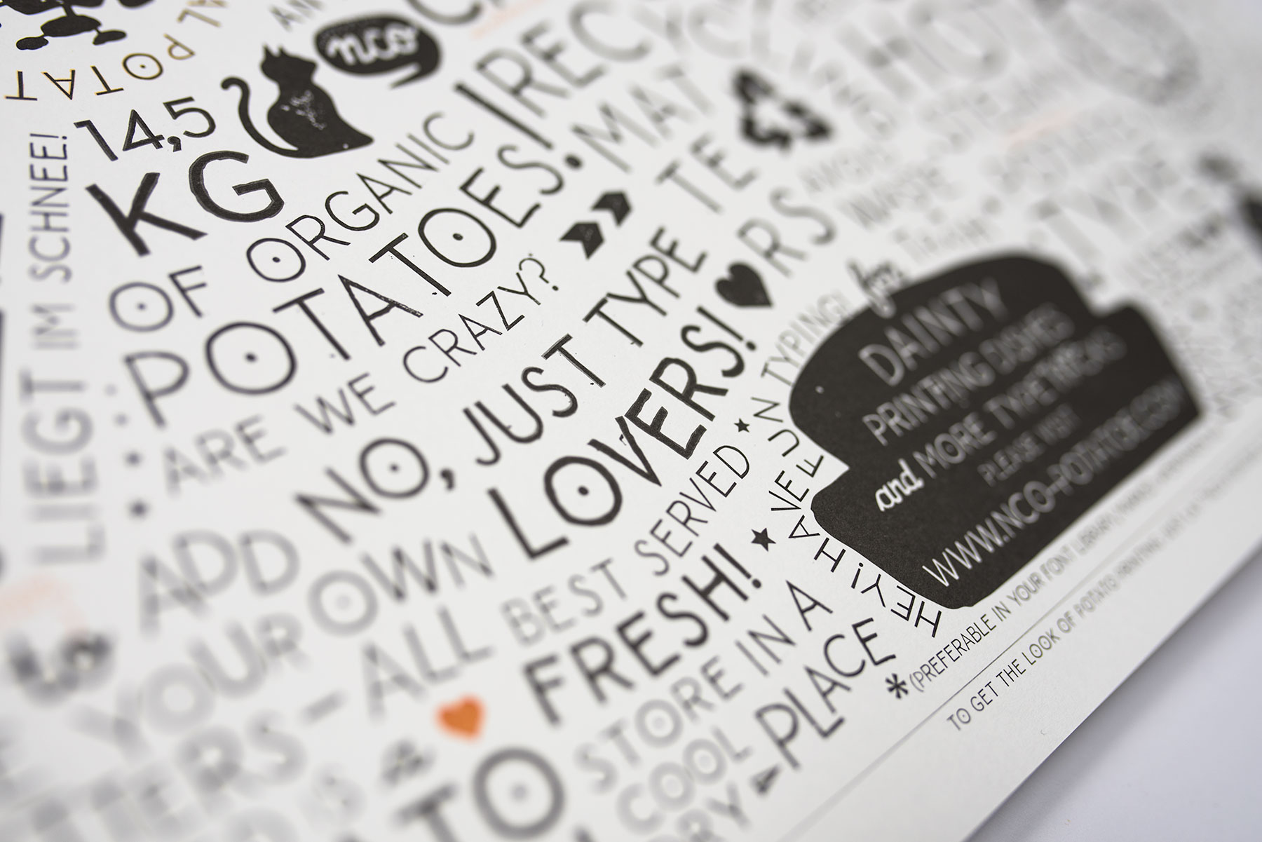 fein und liebevoll im Buchdruck produziert, von hand mit schicken blechecken verstärkt und auf 111 Stück limitiert. Das war unsere Potatoe Deluxe Font Box. Ausgezeichnet beim red dot award communication design 2015. Und leider bereits vergriffen.